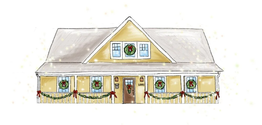 Christmas cover image artwork of the little yellow house by Katie Plunkett for Daystar Counseling Ministries.